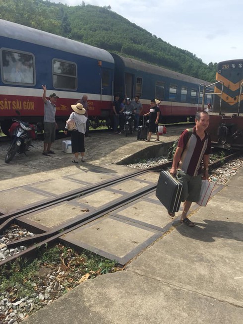 Hành khách tàu SE8 đang phải chờ thông tuyến tại Ga Yên Duệ (Hà Tĩnh). Ảnh CTV |