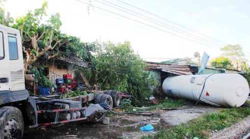 Cú đâm mạnh làm chiếc xe bồn chở gas văng hàng chục mét, tẹc chứa gas từ trên xe văng ra va chạm với mái tôn một nhà dân gần đó. Rất may, tẹc gas không phát nổ, hành khách trên tàu hoảng loạn.
