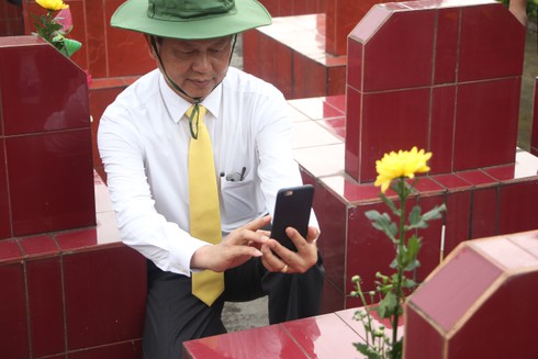 Nhân viên Bưu điện chụp ảnh từng ngôi mộ tại nghĩa trang liệt sỹ huyện Tam Nông, Phú Thọ. |
