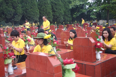 Chụp ảnh mộ liệt sĩ tại nghĩa trang liệt sỹ huyện Tam Nông, Phú Thọ. |