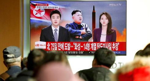 Truyền thông Hàn Quốcđưa tin về vụ phóng tên lửa hôm 29/11 của Triều Tiên. |