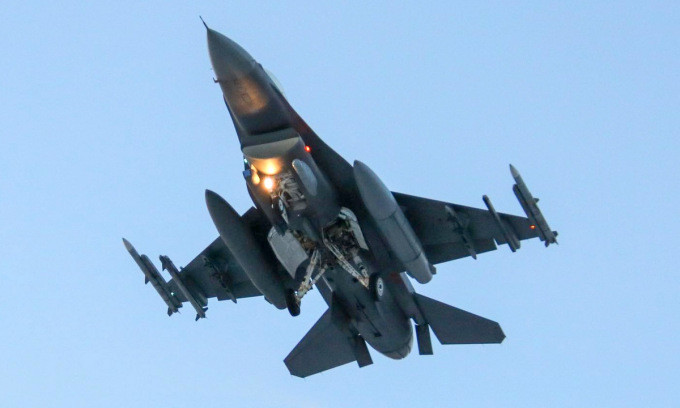 Hình ảnh được chia sẻ trên mạng xã hội cho thấy biên đội hai chiếc F-16 thuộc Phi đoàn tiêm kích số 148 không quân Mỹ trở về căn cứ sau nhiệm vụ hôm 12/2, trong đó mỗi chiếc thiếu một tên lửa AIM-9X ở giá treo dưới cánh.