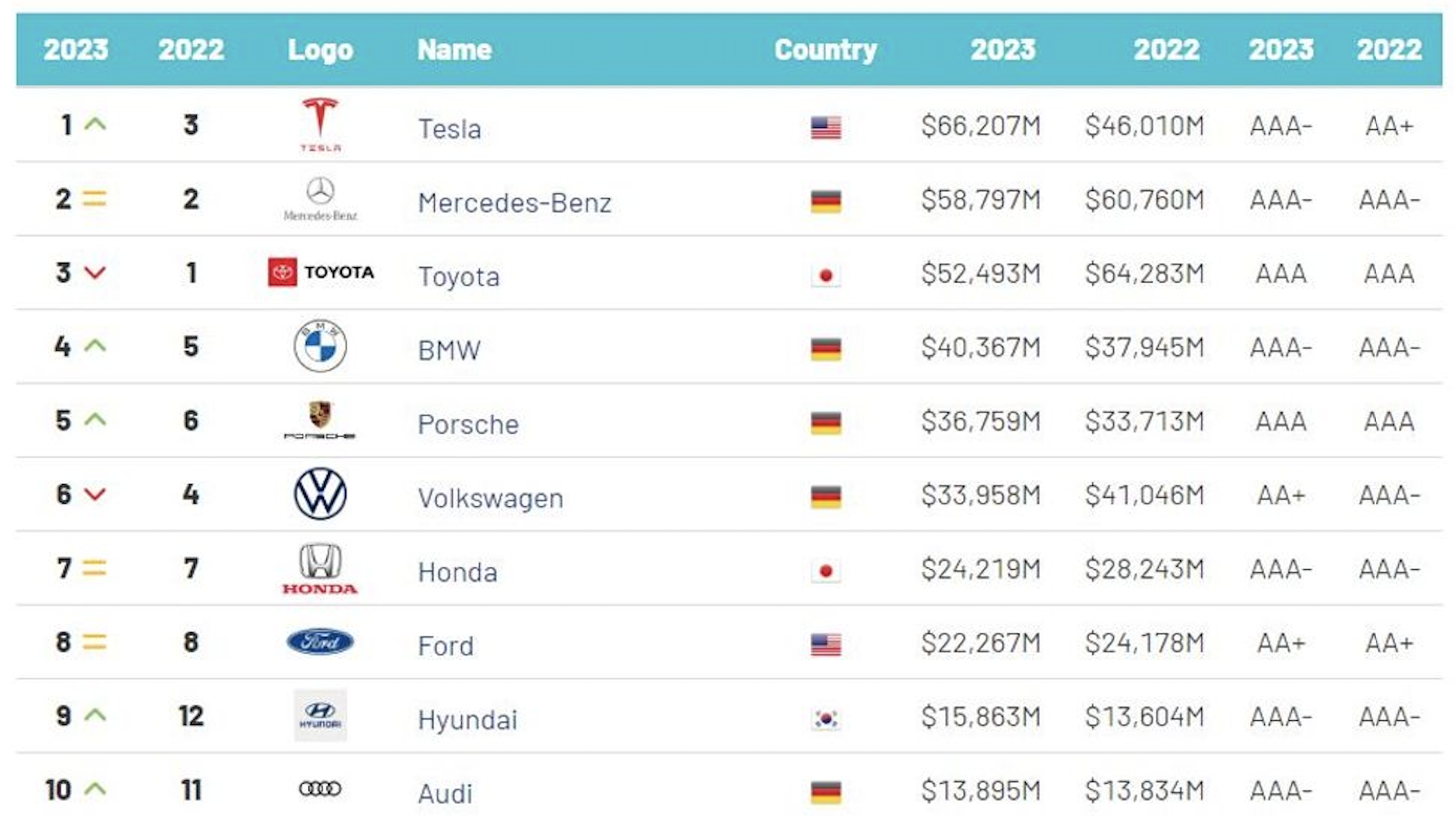 Tổ chức Brand Finance cũng ghi nhận rằng đây là lần đầu tiên, Tesla đứng đầu danh sách các nhà sản xuất ô tô đắt giá nhất và cũng là hãng xe thuần điện đầu tiên trên thế giới làm được điều tuyệt vời này.