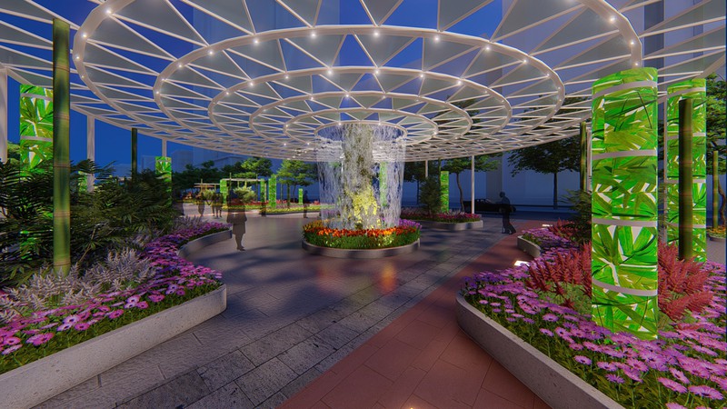 Đặc biệt, với đại cảnh “Rừng nước” lung linh và huyền ảo, đây là lần đầu tiên tại Đường hoa Nguyễn Huệ xuất hiện một cánh rừng cùng sự kết hợp với màn nước tạo nên hệ sinh thái thu nhỏ gợi nhớ đến các công trình sinh thái nổi tiếng trên thế giới như Cloud Forest trong Gardens by the Bay ở Singapore hay The Green Planet ở Dubai (UAE)
