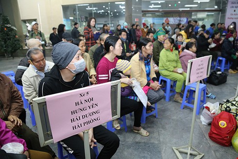 Bà Nguyễn Thị Lỡi (68 tuổi, Thanh Hóa), người phụ nữ neo đơn thường xuyên đi viện một mình, nở nụ cười hiền khi những nhà hảo tâm mang giúp đồ đạc lên xe. "Tết năm nay bà phấn khởi lắm vì không phải đi ra bến xe Mỹ Đình, Giáp Bát. Ngày thường đi đông lắm, ra ngoài đấy xách nào là ba lô, đồ đạc rồi chạy khắp nơi đi tìm xe. Hôm nay được đi xe của Viện về, bà không phải chạy đi tìm xe nữa, lại có người đưa bà ra tận xe, xách đồ hộ bà. Cảm ơn các cháu nhiều!” - Bà Lỡi chào tạm biệt các bác sĩ, điều dưỡng trước khi ra về.