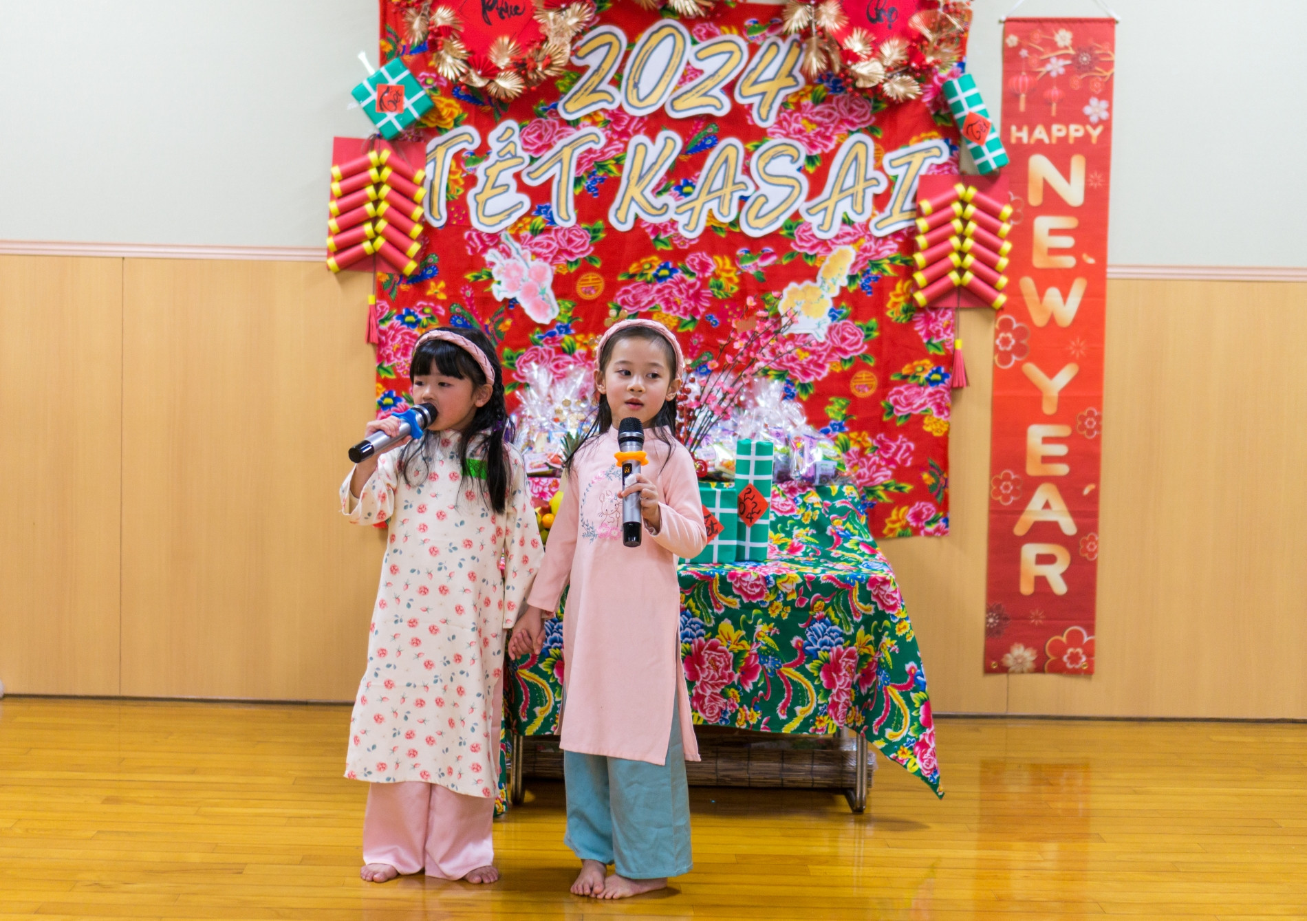 Các bé trổ tài hát tiếng Việt trong chương trình văn nghệ mừng xuân. Ảnh: Đoàn Sỹ Long