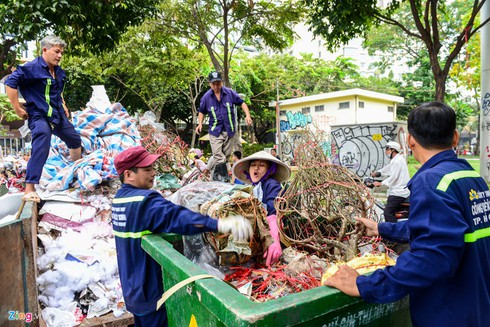 Công nhân dọn dẹp không xuể.