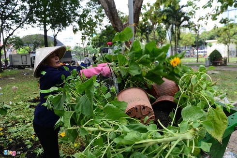 Hơn 1000 chậu hoa thành rác trưa 30 Tết Một hộ kinh doanh đến TP.HCM từ Sa Đéc, Đồng Tháp quyết định đổ bỏ hơn 1.000 chậu hoa cúc vàng do không bán được, trưa 30 Tết tại công viên 23/9.