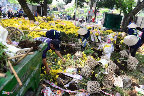 Hoa được trưng bày tươi đẹp để bán Tết trong phút chốc biến thành đống rác.
