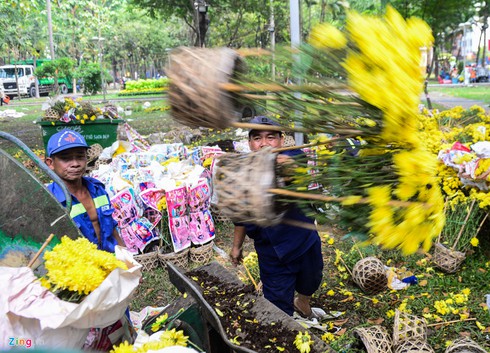 Trong khi đó, một số hộ kinh doanh tranh thủ những phút cuối cùng mong bán được hoa nào hay hoa đó. Hoa cúc vàng có giá 300.000 đồng/cặp được rao còn 80.000 đồng/cặp. Hoa hồng giảm còn 70.000 đồng/cặp. Hoa đuôi phụng còn 60.000 đồng/cặp. Đến 12h trưa tại công viên 23/9, một hộ kinh doanh còn hơn 10 cặp cúc vạn thọ rao bán với giá 10.000 đồng/cặp.
