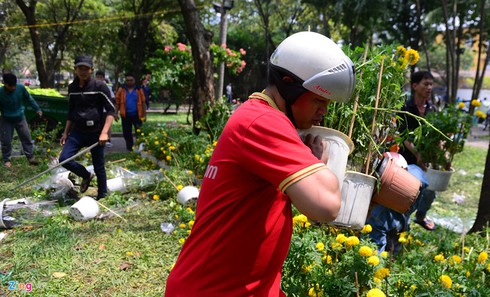 Sau 12h ngày 15/2 (30 Tết), các hộ kinh doanh buôn bán hoa tại công viên 23/9 phải trả lại mặt bằng. Lượng hoa còn nhiều nên nhiều người bán tháo, bán đổ. Một số khách hàng vẫn chần chừ đợi đến giờ cuối mong hoa giá rẻ. Một số hộ kinh doanh bán hoa giờ chót với giá "vừa bán vừa cho" nhưng cũng có người giữ giá thà bỏ chứ không để bị ép giá.