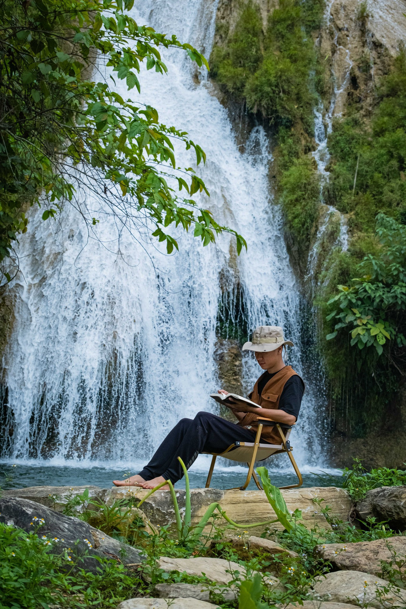 Thác 3 tầng đẹp mê ly ở miền Bắc, du khách rủ nhau cắm trại trốn nóng cuối tuần