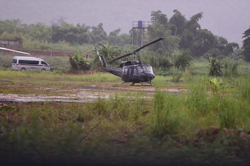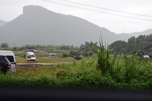 Một số trực thăng ở khu vực hang Tham Luang, sẵn sàng trực chiến. |
