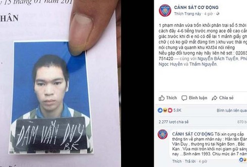 Mới đây, trên các trang mạng xã hộ đăng tải nội dung: "Truy tìm phạm nhân vừa trốn trại cách đây 6 tiếng tại Thái Nguyên. Phạm nhân Đàm Văn Duy (25 tuổi, ở Ngân Sơn, Bắc Kạn) chịu mức án 7 năm tù".