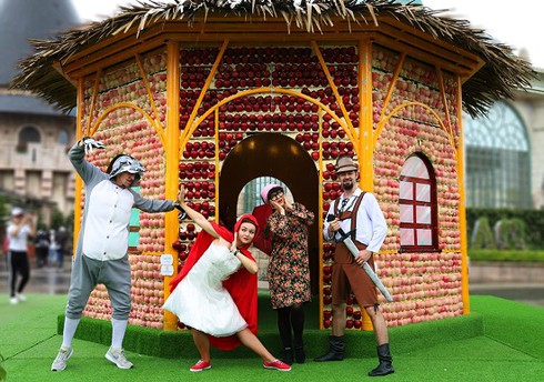 Hãy thử chạm tay vào những tiểu cảnh đầy sức sống ấy nhé! Bạn sẽ rất bất ngờ khi chúng là những nguyên liệu tươi được nhập khẩu từ châu Âu xa xôi. Vô vàn những trái táo, bắp ngô, hoa tươi,… được khéo léo kết đính lên ngôi nhà cổ tích.