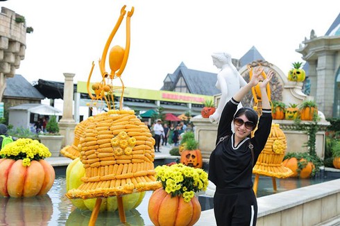 Hàng vạn trái bí ngô nhiều kích thước từ tí hon tới khổng lồ được xếp thành những cỗ xe bí vàng bí bạc, tạo nên khung cảnh thần tiên giữa đời thực, nơi lý tưởng cho du khách ghi lại những khoảnh khắc đặc biệt.