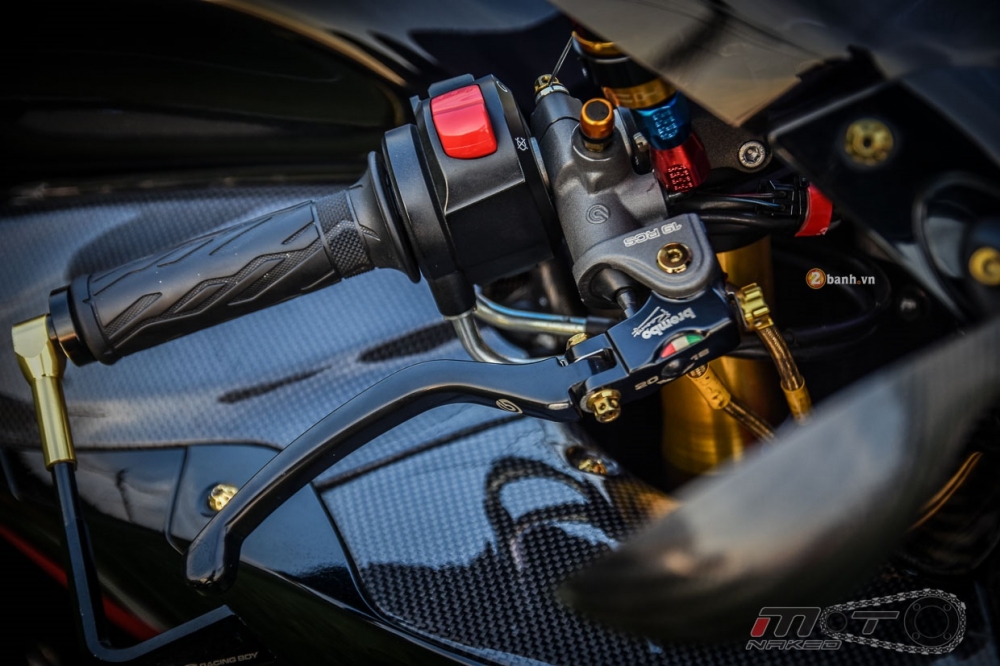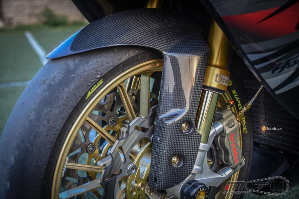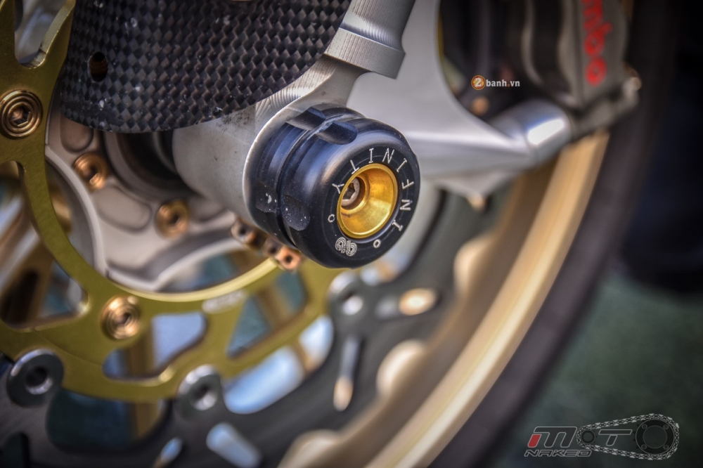 Trang bị cho dàn chân trước với cặp đĩa Arashi và cặp heo Brembo HP Racing.