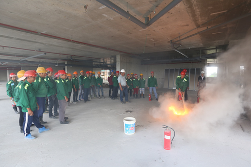 Công nhân xây dựng được tập huấn kỹ năng PCCC tại công trường. (Ảnh minh hoạ) |