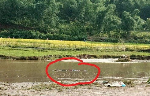 2 vợ chồng bị điện giật khi đi qua suối (ảnh khoanh đỏ). |