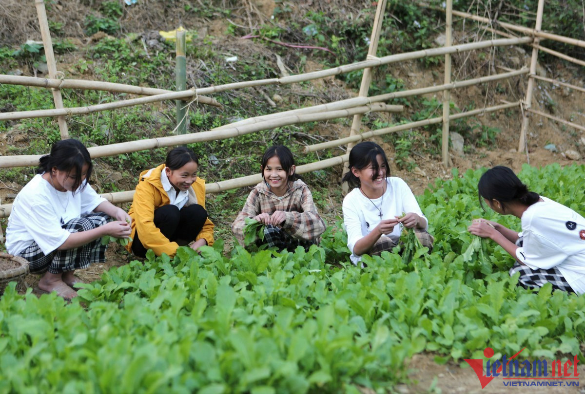 “Ban đầu diện tích trồng rau của trường lên đến gần 3.000m2. Do đặc thù của khu vực miền núi, hàng năm diện tích đất bị trôi, lở xuống vực, do vậy đến thời điểm hiện tại chỉ còn khoảng gần 1.000m2. Với diện tích trên, mỗi lớp sẽ được đảm nhiệm một luống để tự trồng và chăm sóc rau”, thầy Thủy cho biết.