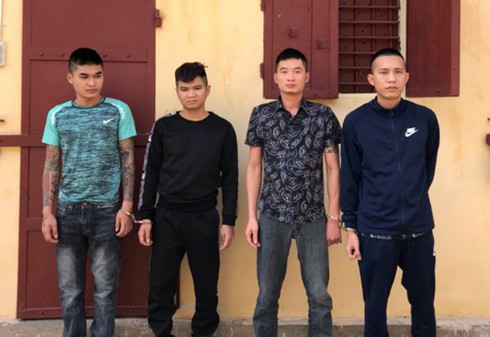 Các đối tượng Đại, Phi, Hát, Định (từ trái qua phải) tại cơ quan Công an |