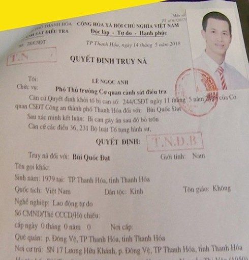 Hiện nay, Cơ quan CSĐT cũng ra quyết định truy nã 3 đối tượng gồm Bùi Quốc Đạt (tức Đạt ma, SN 1979) trú phường Đông Vệ, TP Thanh Hóa; Đỗ Quốc Khánh (tức Khánh chuột, SN 1986) trú phường Ngọc Trạo, TP Thanh Hóa; Lê Hữu Thành (tức Thành nhồi, SN 1984) trú phường An Hoạch, TP Thanh Hóa.