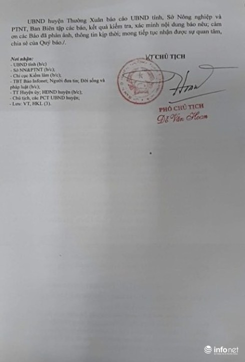 Công văn của huyện Thường Xuân trả lời Báo điện tử Infonet |