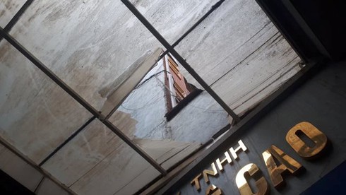 Khu vực nơi chiến sỹ rơi từ tầng 2 xuống đất |