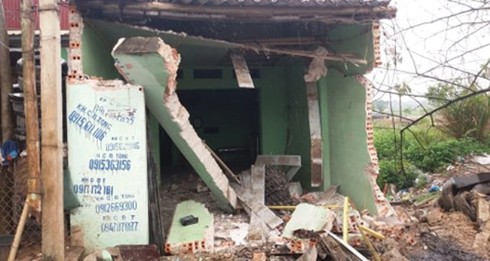 Chưa dừng lại ở đó, xe container lao sang làn đường đối diện và lật nghiêng chắn ngang đường và chỉ dừng lại khi tông vào nhà của gia đình ông Lê Hữu Khương (SN 1963, trú xã Quảng Tân, huyện Quảng Xương).
