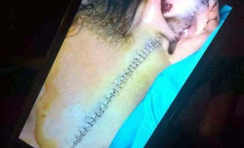 Tại Bệnh viện Việt Đức, bác sĩ thông tin, vết thương của em gái anh dài 14cm, sâu 0,5cm, toàn bộ má trái kéo dài đến tai, tai trái.