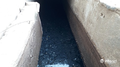 Nước thải tại 1 rãnh thoát nước đen kịt, bốc mùi hôi thối. |