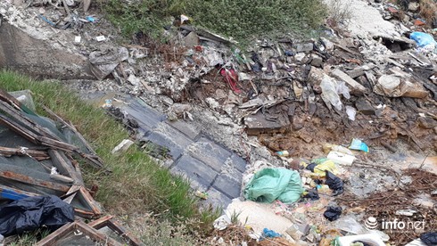 Chất thải ùn ứ tại cửa cống. |