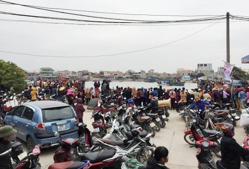 Người dân chờ đón thi thể nạn nhân chìm tàu về đất liền. |