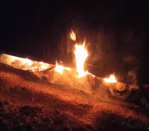 Vào thời điểm trên, khi xe ô tô tải mang BKS 37C-094.46 do anh Nguyễn Văn Kiên (SN 1986, trú huyện Anh Sơn, Nghệ An) điều khiển đang di chuyển trên đường mòn theo hướng Nam-Bắc, chở theo 40 tấn ngô đến đoạn đường trên thì bỗng dưng cả xe bốc cháy ngùn ngụt.