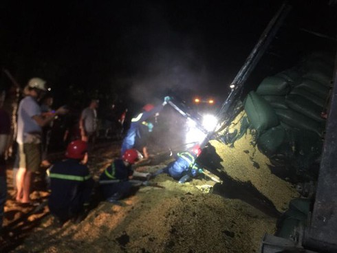 Đến 4h55’ sáng cùng, ngày đám cháy đã được khống chế và dập tắt hoàn toàn. Vụ cháy không gây thiệt hại về người nhưng chiếc xe chở ngô bị hư hỏng nặng, nhiều tấn ngô đã bị lửa cháy đen.