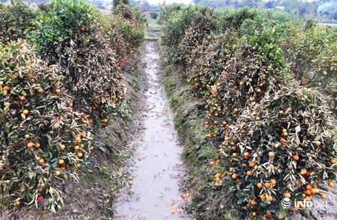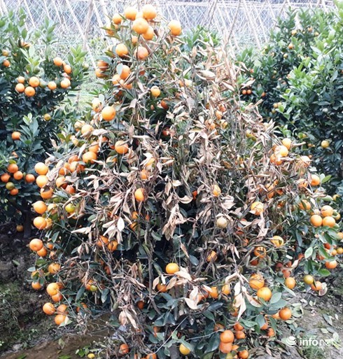 Những cây quất cháy hết lá, khô cành và rụng quả. |