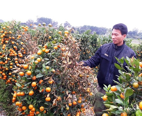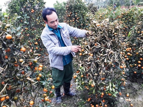 Gia đình tôi làm quất 7-8 năm nay rồi nhưng đây là lần đầu tiên bị kẻ gian phun vào cây quất. Vườn quất của tôi có tổng diện tích 110 cây, giá bán cho thương lái khoảng hơn 300 nghìn đồng/cây, ước tính ban đầu chúng tôi bị thiệt hại hơn 30 triệu đồng” - anh Huế cho biết.