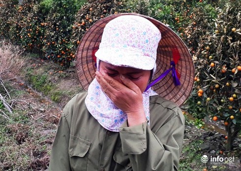 Chị Nguyễn Thị Lụa (SN 1985, vợ anh Huế) nghẹn ngào cho biết: “Không hiểu vì lý do nào kẻ xấu lại phá hoại nguồn thu mấy năm nay của gia đình chúng tôi. Mỗi lần nhìn vào vườn quất này, tôi lại nghĩ đến cái Tết này, và nguồn thu cả năm tới đây không biết phải trông chờ vào đâu?”.