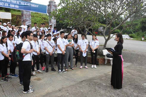 Thanh niên Kiều bào nghe giới thiệu về Khu di tích lịch sử sinh thái ATK Định Hóa |