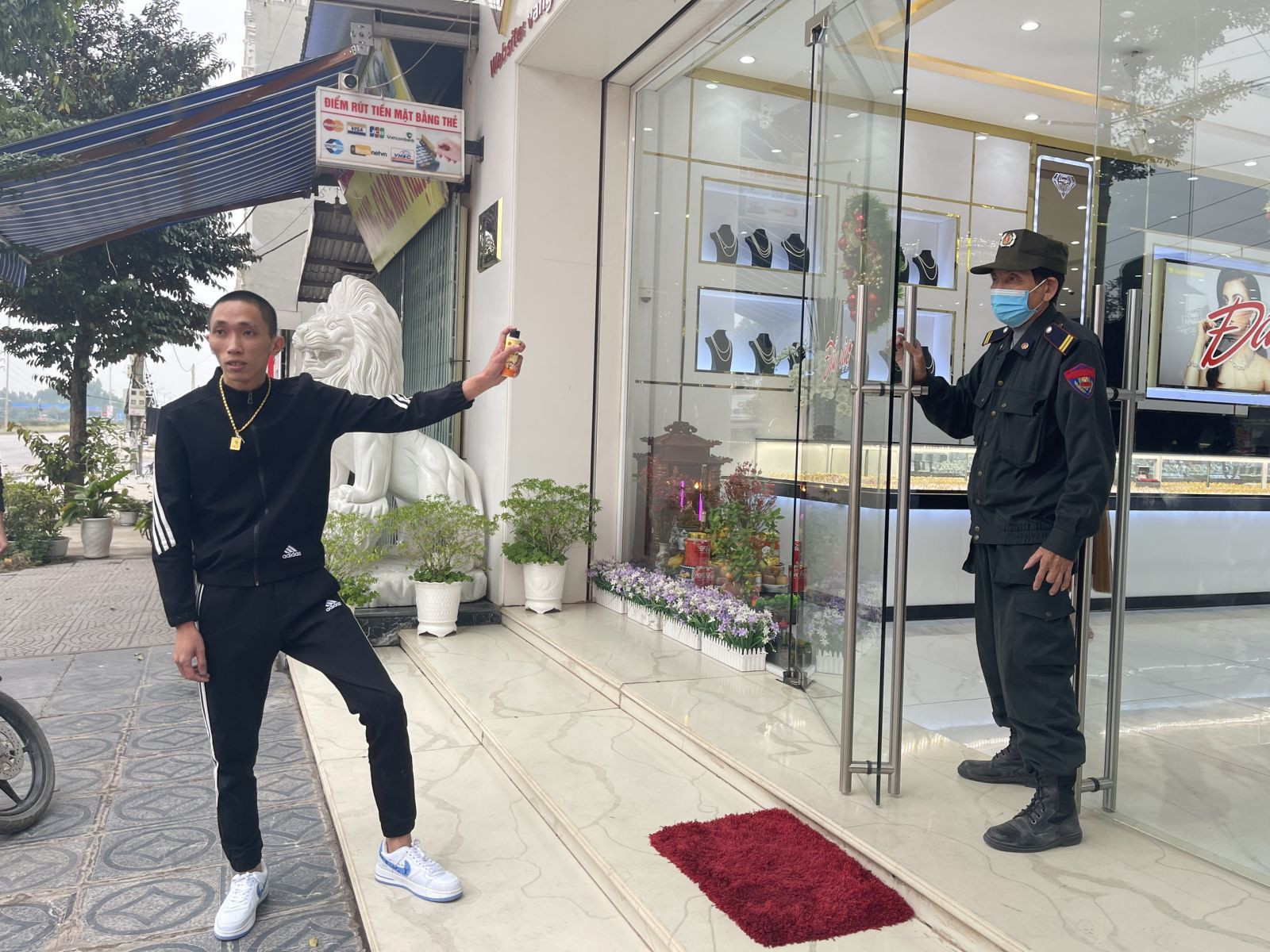 Để thoát thân, Toàn đã dùng bình xịt hơi cay được chuẩn bị từ trước để xịt chống trả lại bảo vệ và nhân viên của tiệm vàng, rồi nhanh chóng lên xe máy tẩu thoát.