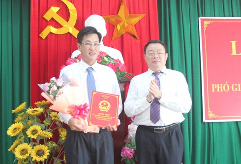 Chủ tịch UBND tỉnh Phú Yên trao quyết định và chúc mừng đồng chí Trần Văn Tân. Ảnh báo Phú Yên |