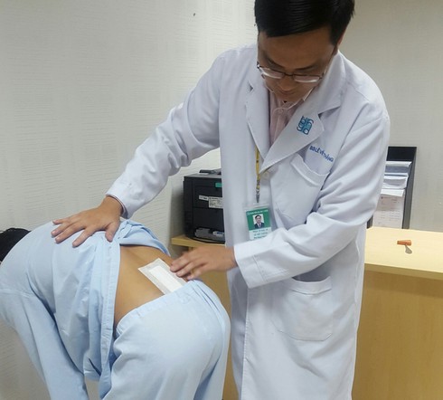 BS Thắng đang kiểm tra cột sống của một bệnh nhân |