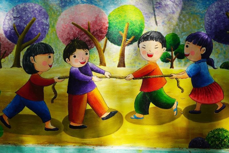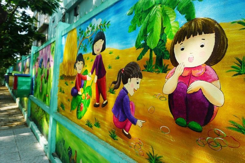 Mỗi bức tranh có từng chủ đề riêng như các trò chơi dân gian, bảo vệ môi trường