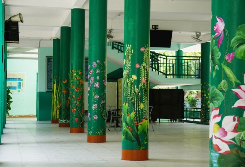 “Thầy Thanh biến những mảng tường cũ kỹ, đơn điệu trở nên sống động...”, cô Nguyệt chia sẻ.