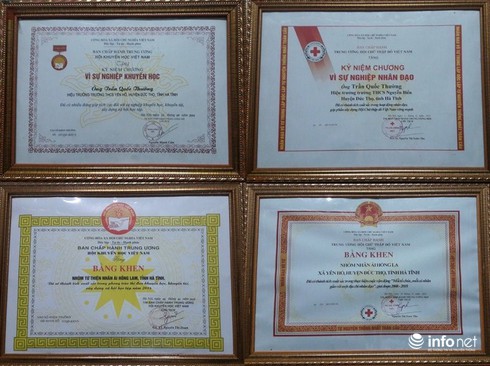 Nhiều Bằng khen dành cho cá nhân thầy Trần Quốc Thường và Quỹ Nhân ái Hồng La |