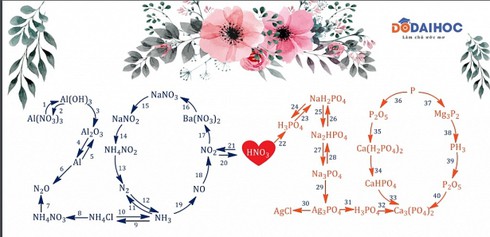 Nếu nhìn kỹ chúng ta sẽ thấy, từ hợp chất ban đầu là muối Nhôm Nitrat, tức Al(NO3)3 và qua một chuỗi các chu trình phản ứng tuần tự từ trái sang phải theo hình dạng của con số 20 - 10, chất cuối cùng được tạo ra là muối Canxi photphat, tức Ca2(PO4)3.