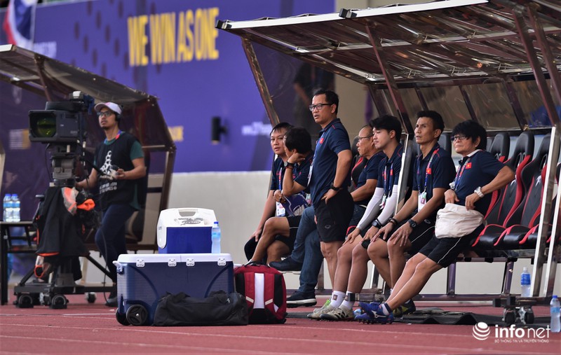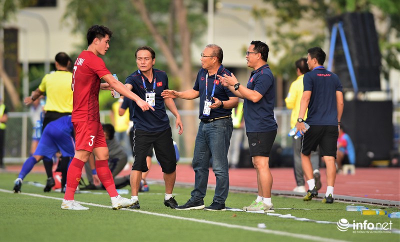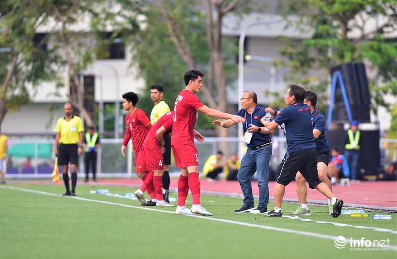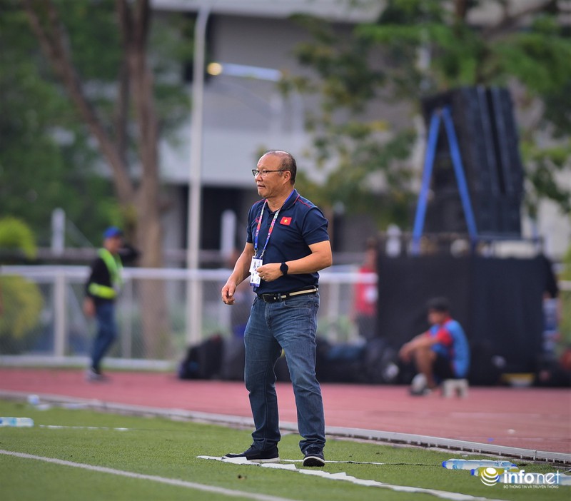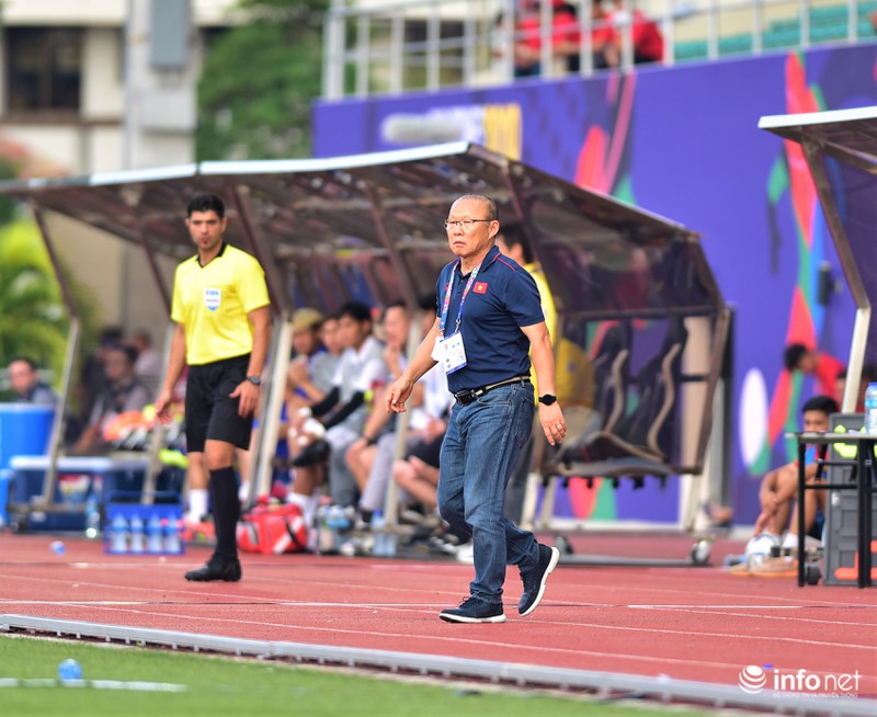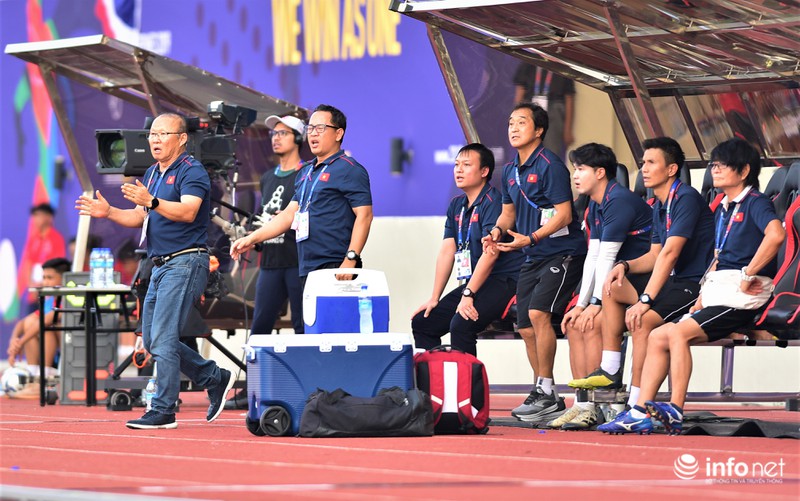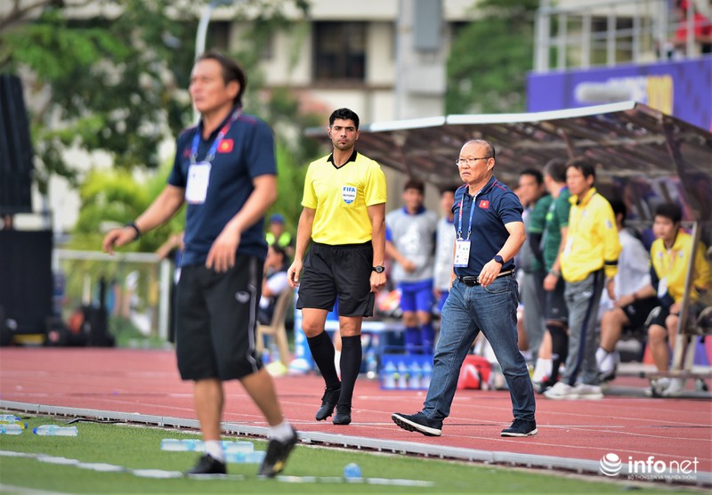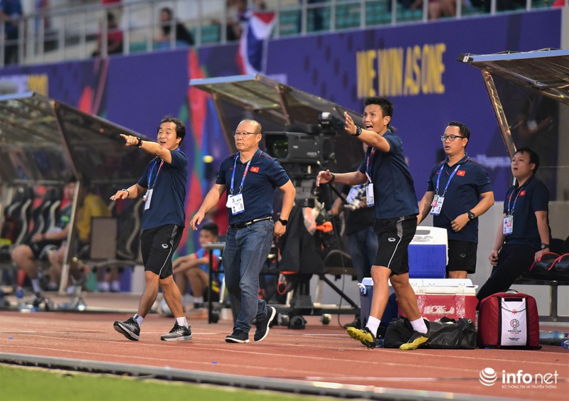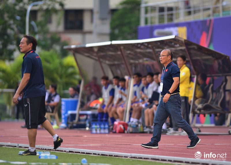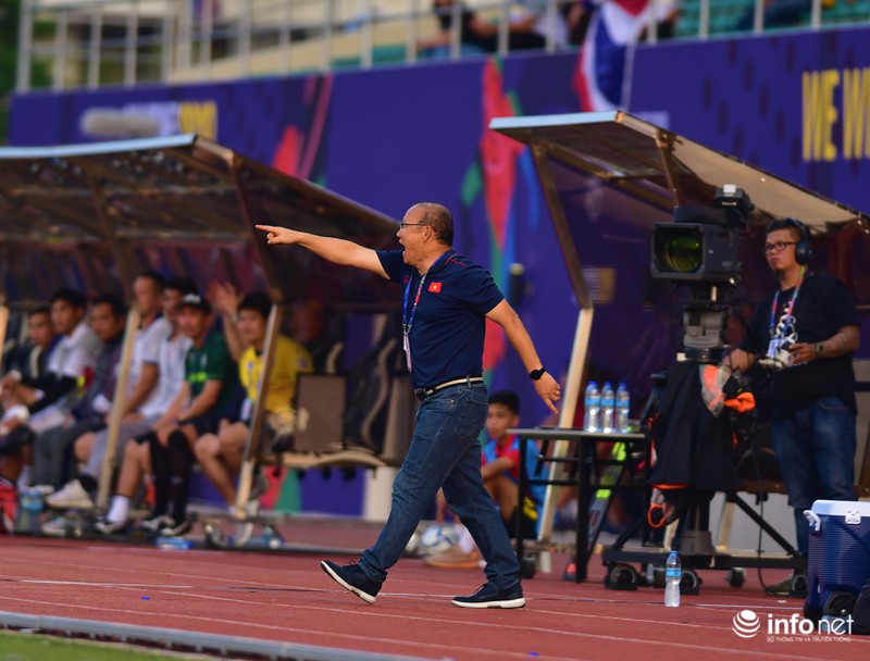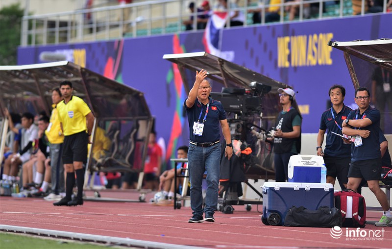 Khi đội U22 Thái Lan đang có đà hưng phấn sau khi ghi được 2 bàn thắng sớm, HLV Park Hang Seo yêu cầu các cầu thủ lùi về phía sân nhà.
