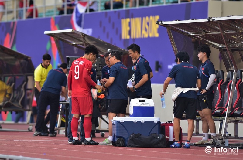 HLV Park nhanh chóng thay đổi cách chơi, trước khi Việt Nam thật sự rơi vào bế tắc. Hậu vệ phải Hồ Tấn Tài được rút ra nghỉ, thay vào đó là Đức Chinh. U22 Việt Nam chuyển từ sơ đồ 3-4-3 sang 3-5-2 với tuyến giữa được gia cố thêm nhân sự.