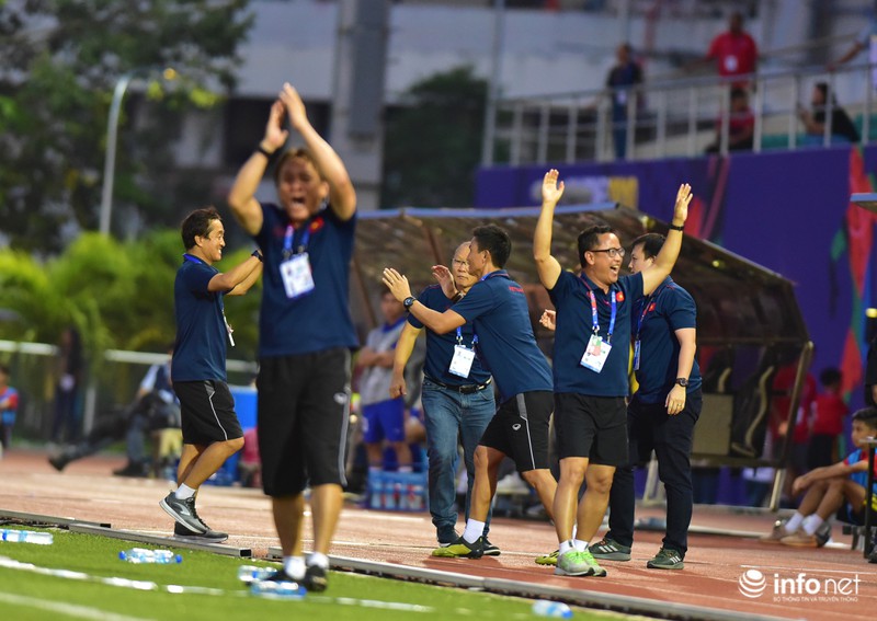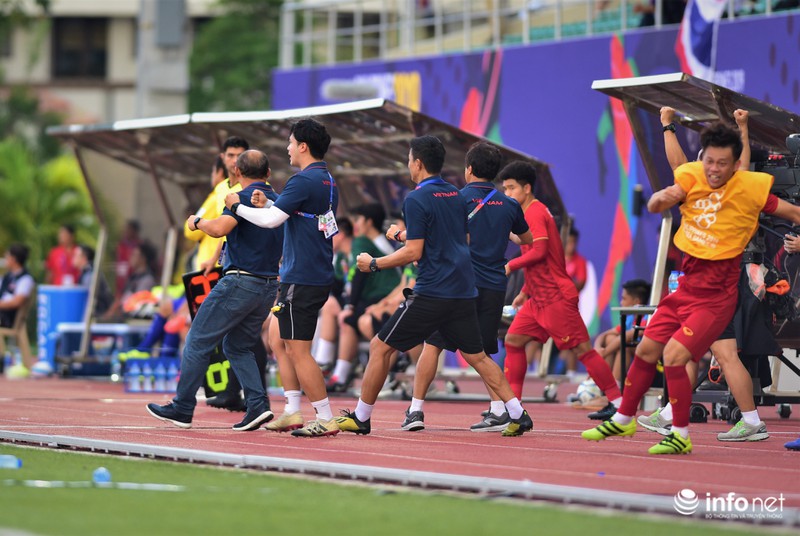 Có bàn thắng, các học trò của HLV Park Hang-seo thi đấu hưng phấn và gây sức ép đáng kể lên khung thành của U22 Thái Lan. Tuy nhiên, hàng thủ của “Voi chiến” đã kiên cường chống đỡ để có được lợi thế sau 45 phút đầu tiên.