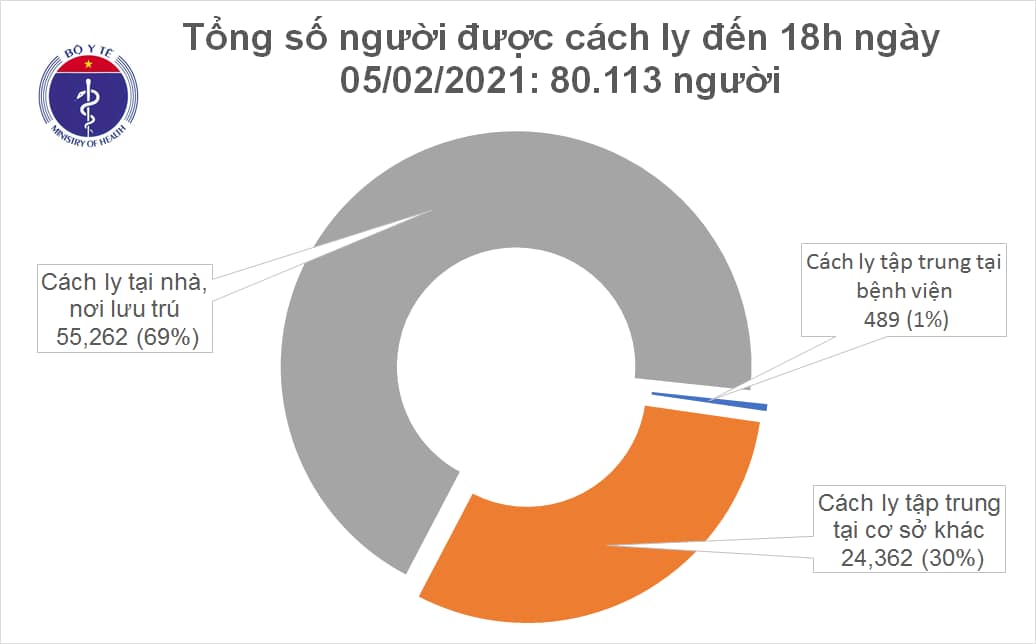 Số người cách ly: Tổng số người tiếp xúc gần và nhập cảnh từ vùng dịch đang được theo dõi sức khỏe (cách ly): 80.113, trong đó: